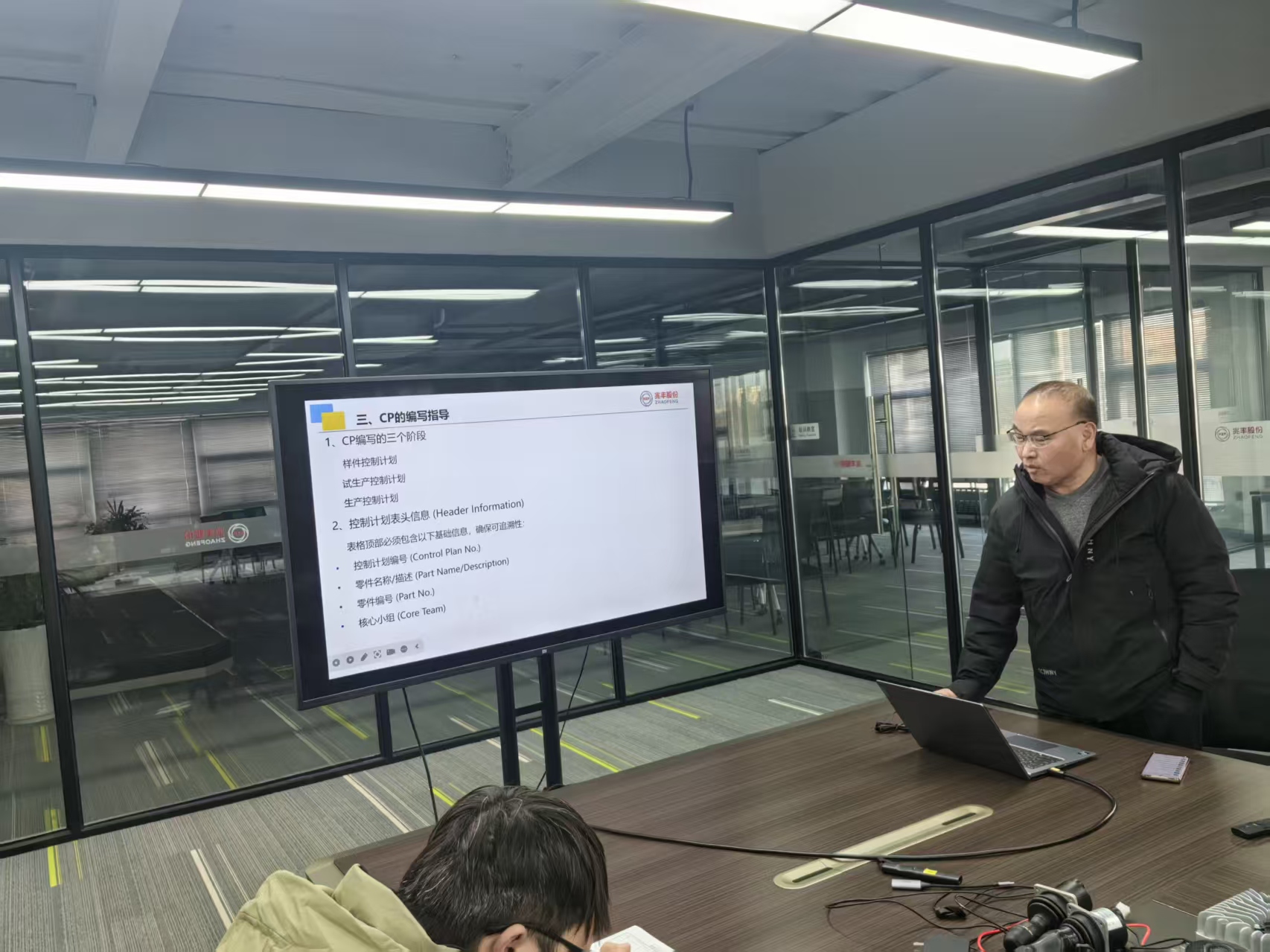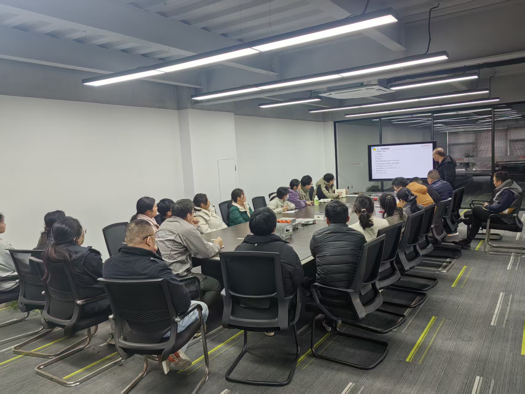 Para padronizar ainda mais o controle do processo produtivo e aprimorar a compreensão e capacidade de preparação do Plano de Controle (CP) da equipe, a empresa organizou um treinamento especial sobre conhecimentos de CP e orientações de preparação na Sala de Reuniões 1 do Prédio de Escritórios, das 16h30 às 17h30. Liderado por um especialista sênior em qualidade, o treinamento contou com a participação ativa de backbones de vários departamentos e funcionários relevantes, que juntos exploraram o código de qualidade para operações eficientes.